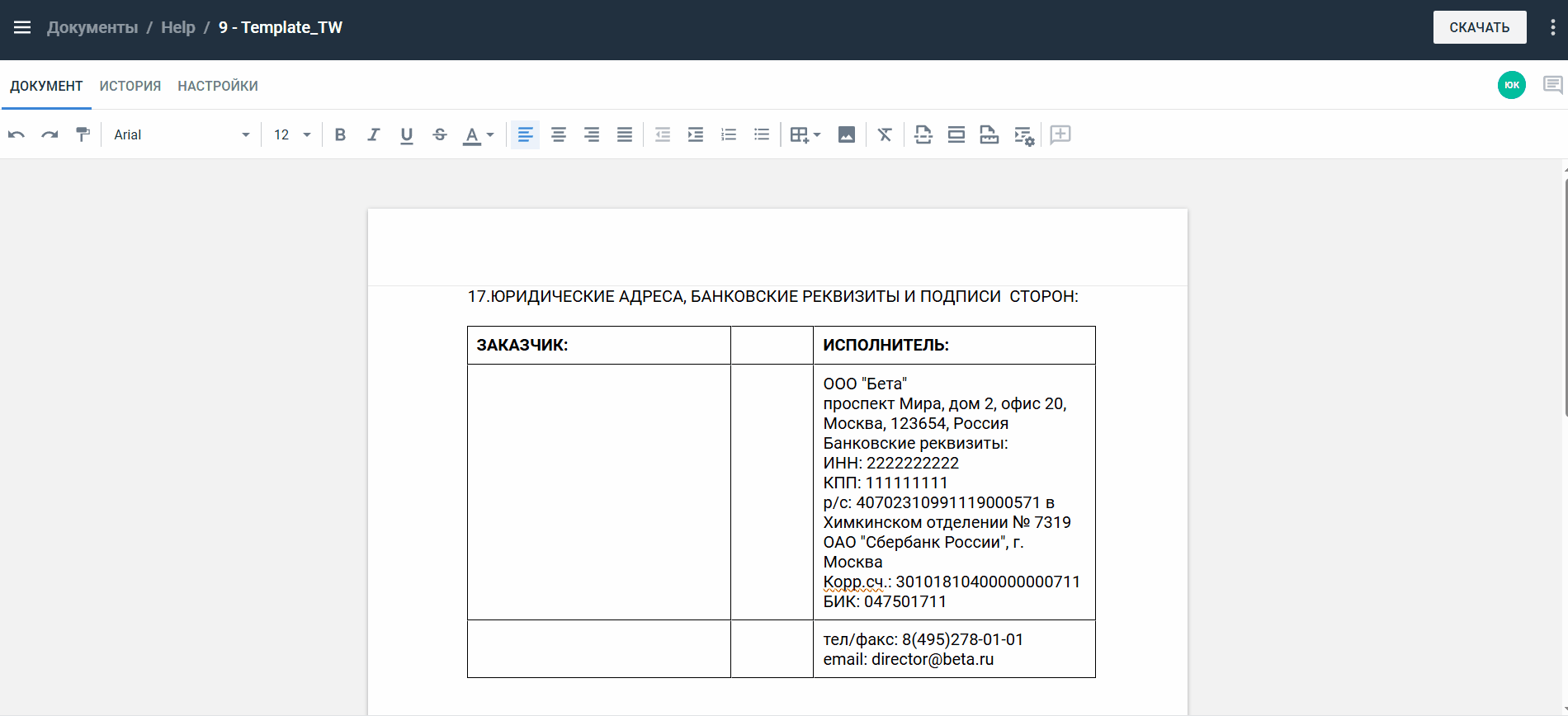 Примечание. По умолчанию используется шрифт Arial, размер - 12, цвет - черный.