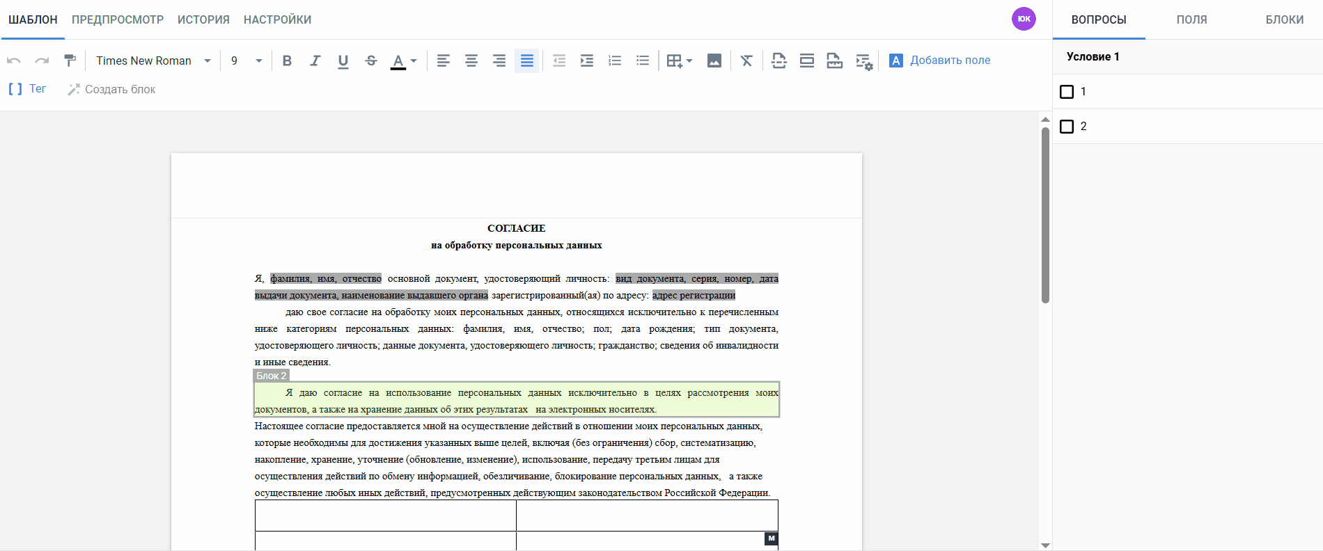 Отобразившийся шаблон доступен только для просмотра. Для редактирования восстановите версию и внесите изменения на вкладке Шаблон.